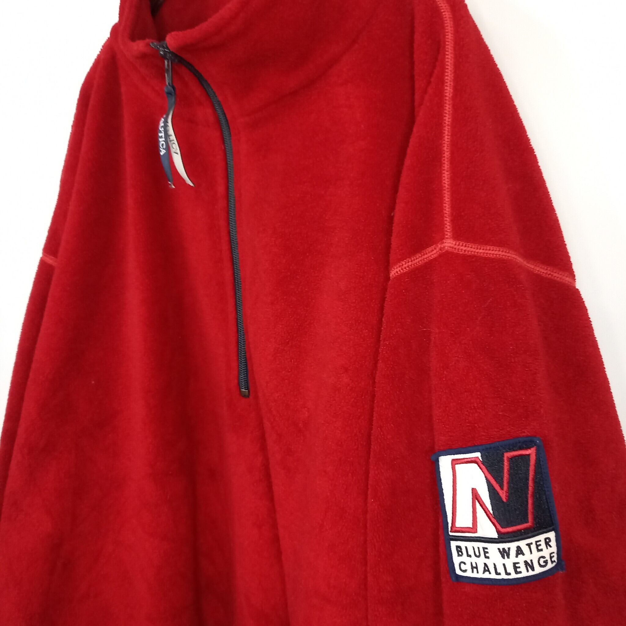 90s アメリカ製 ノーティカ フリース プルオーバー 刺繍ロゴ 赤 L/G