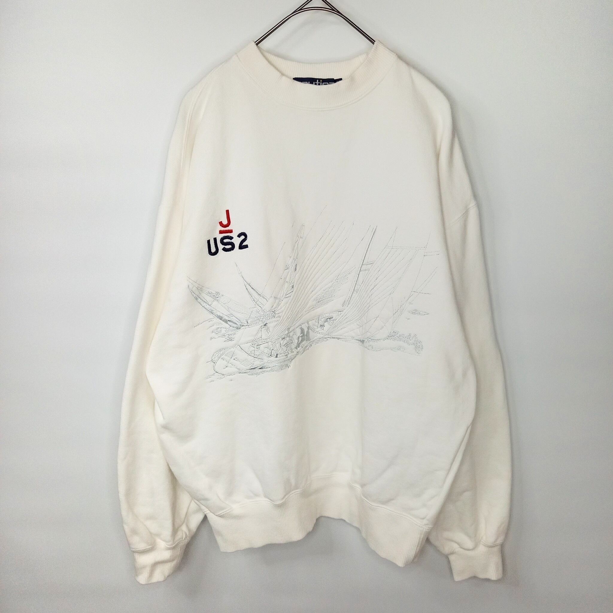 ノーティカ クルーネック スウェット プルオーバー トレーナー 刺繍 ホワイト M