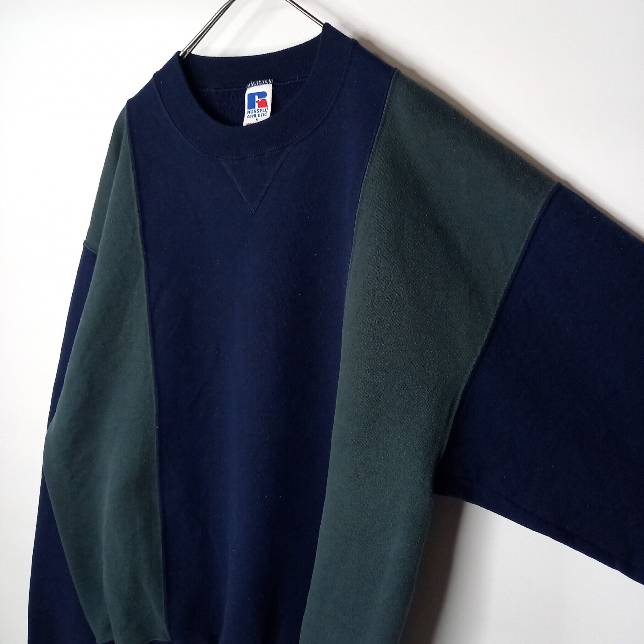 90s アメリカ製 ラッセル スウェット トレーナー ストライプ ネイビー グリーン M