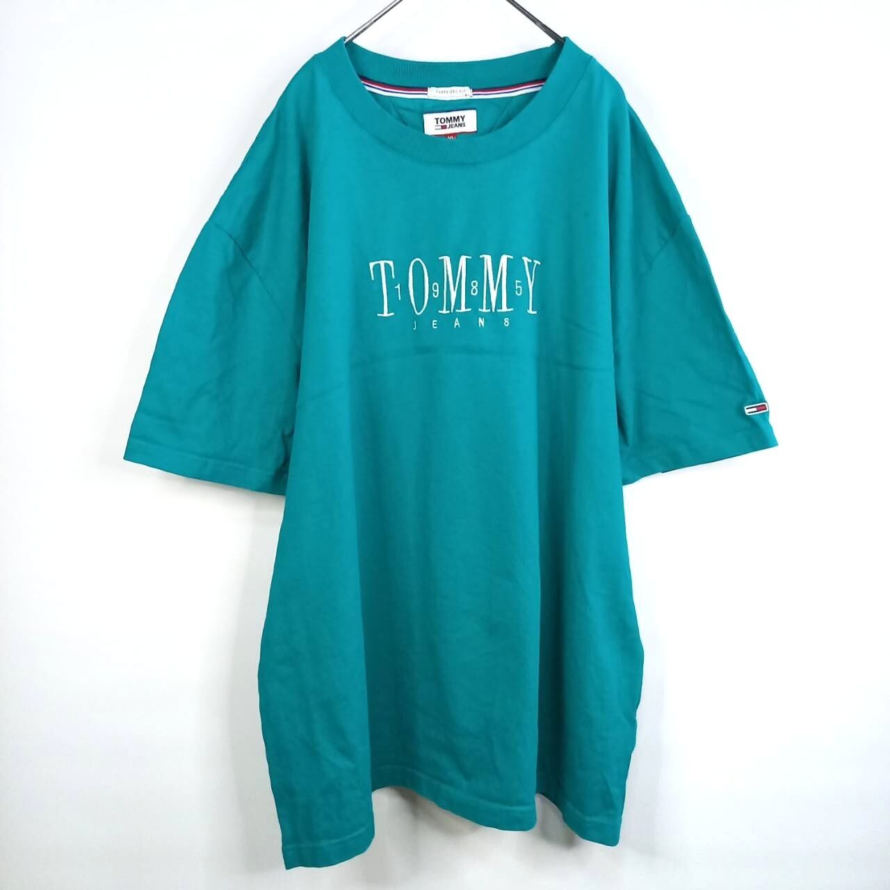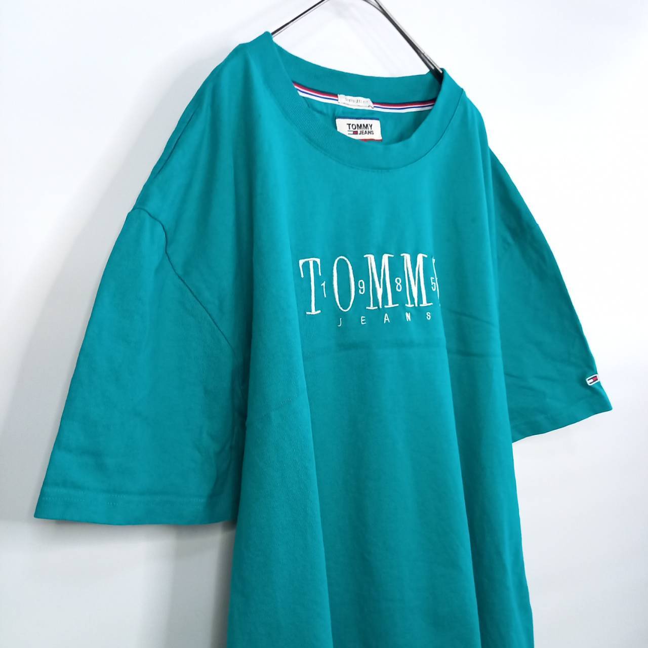 トミージーンズ Tシャツ 半袖 刺繍 ビッグロゴ オーバーサイズ グリーン XL