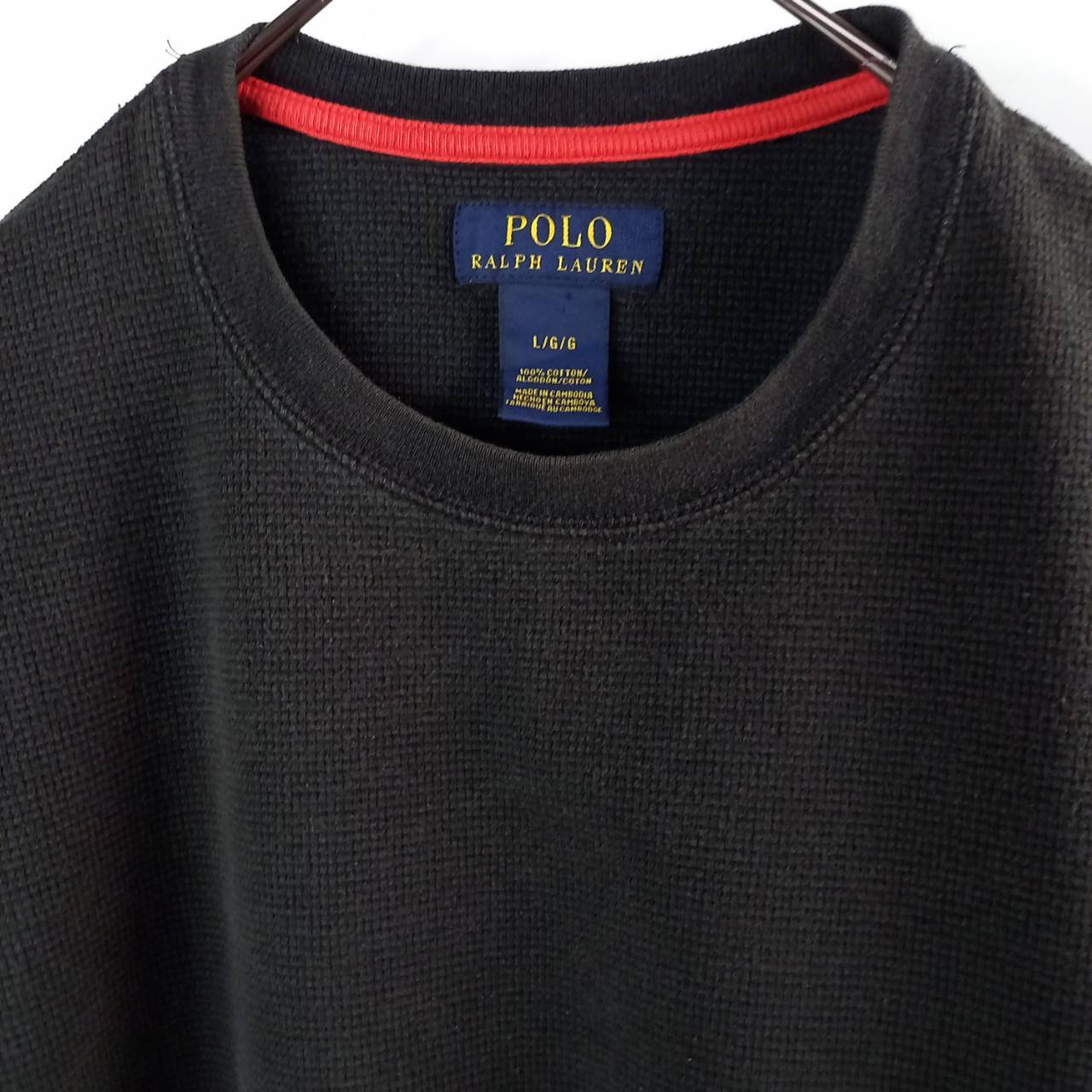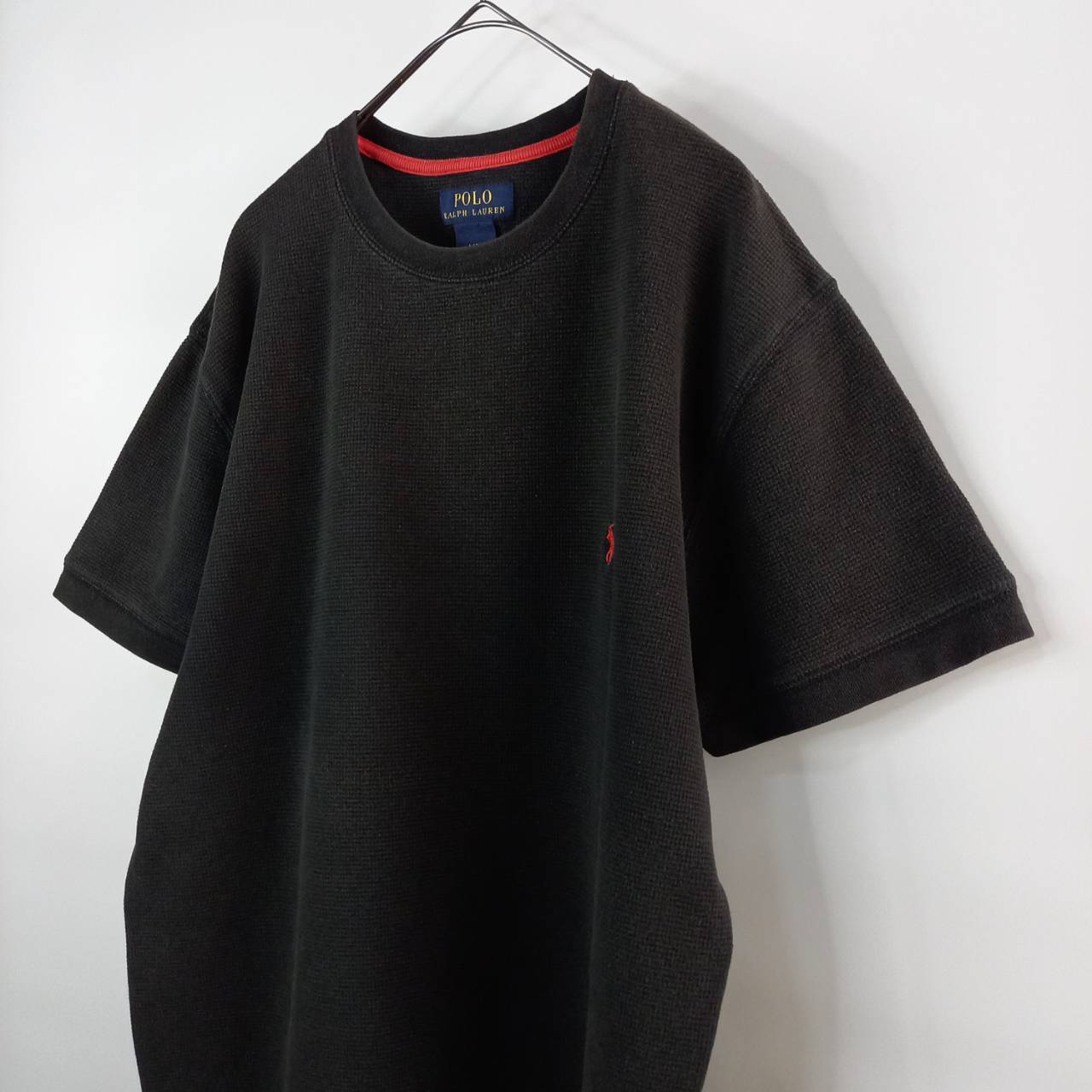 ポロラルフローレン クルーネック ワッフル Tシャツ 半袖 無地 刺繍 黒 L